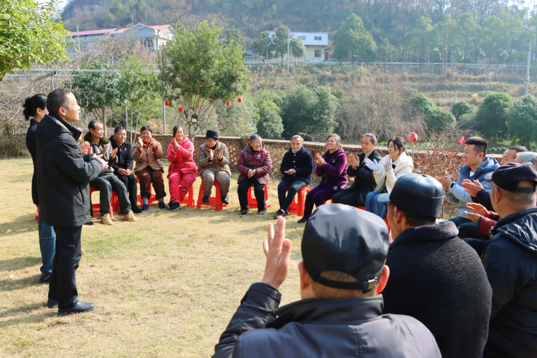 “坚持把解决‘三农’问题作为全党工作的重中之重。”宣讲员结合产业发展实情解读道,“我们村的柑橘园从早年50亩荒坡试点,逐步整合资源扩至200亩‘金银川’,食用菌菇棚年产值已超百万元,这些成绩靠的是政策支持和乡亲们的实干打拼,正是全会精神在乡土落地生根的生动体现!”通俗直白的讲解让村民对全会精神有了更直观的感受,这场“冒着热气、透着烟火气”的宣讲,让党的创新理论浸润人心。