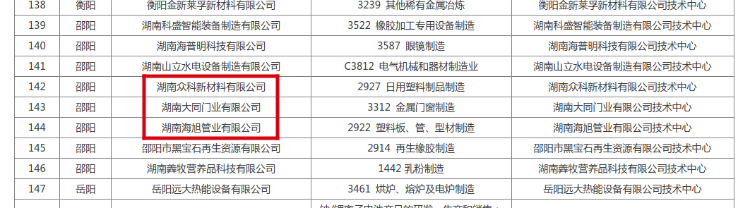 新邵新闻网1月26日讯(通讯员 马轶驹 周江东 肖丽 谢东杰)近日,省工信厅公示了新一批省级企业技术中心拟认定名单,新邵县湖南海旭管业有限公司、湖南众科新材料有限公司、湖南大同门业有限公司3家企业成功入选。当前,全县省级企业技术中心总数达11家,持续位居全市前列。