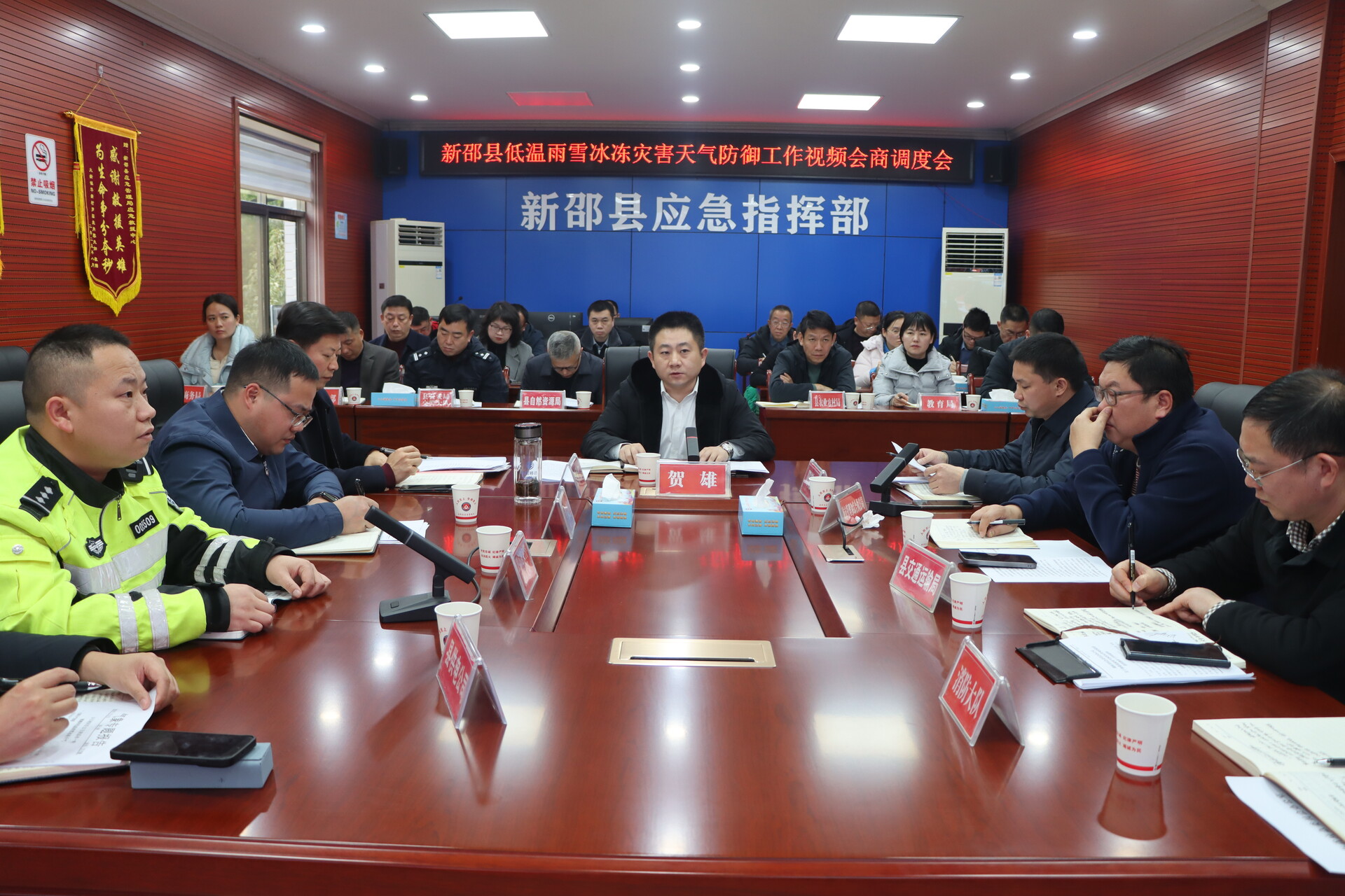 新邵新闻网1月20日讯(记者 彭欢 王宏志)1月19日,新邵县低温雨雪冰冻灾害天气防御工作视频会商调度会在县应急管理局召开。县委常委、常务副县长贺雄出席会议并讲话。