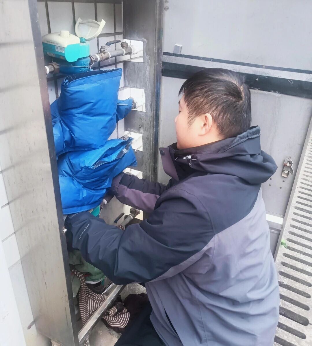 为应对寒潮冰冻天气,全力保障城乡供水安全。县自来水公司成立应急领导小组,统筹防寒保供工作。提前对供水管网、水表、阀门等设施进行巡查,并对裸露部位加装保温材料,从源头做好防护。同时,应急抢修队伍及物资已准备就绪,服务热线保持24小时畅通,确保用户反映的冻表、爆管等问题能够“接诉即办”,快速处理。此外,公司通过多种渠道向市民宣传水管、水表防冻与解冻的正确方法,提醒做好“穿衣戴帽”“滴水成线”等居家防护,与用户共同筑牢供水安全防线。