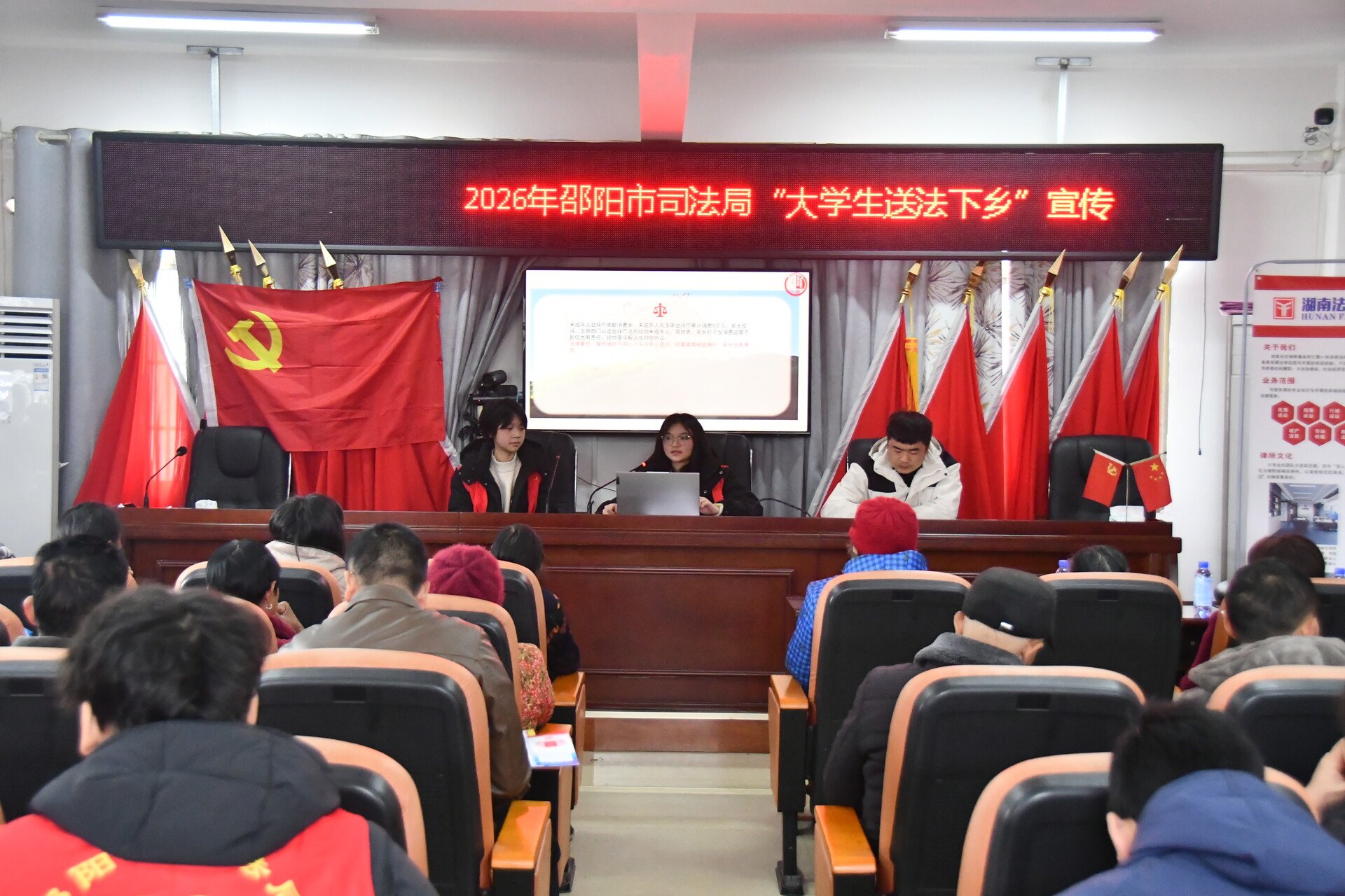 新邵新闻网2月7日讯(记者 寻健 通讯员 唐珍婷)为提升群众法治意识和素养,充分发挥返乡大学生在普法宣传中的积极作用,2月6日,新邵县司法局积极响应市级工作部署,抓住高校学子寒假返乡契机,组织来自湘潭大学等多所高校的17名大学生志愿者,到酿溪镇石背垅社区,集中开展了“送法到万家”普法志愿服务活动。