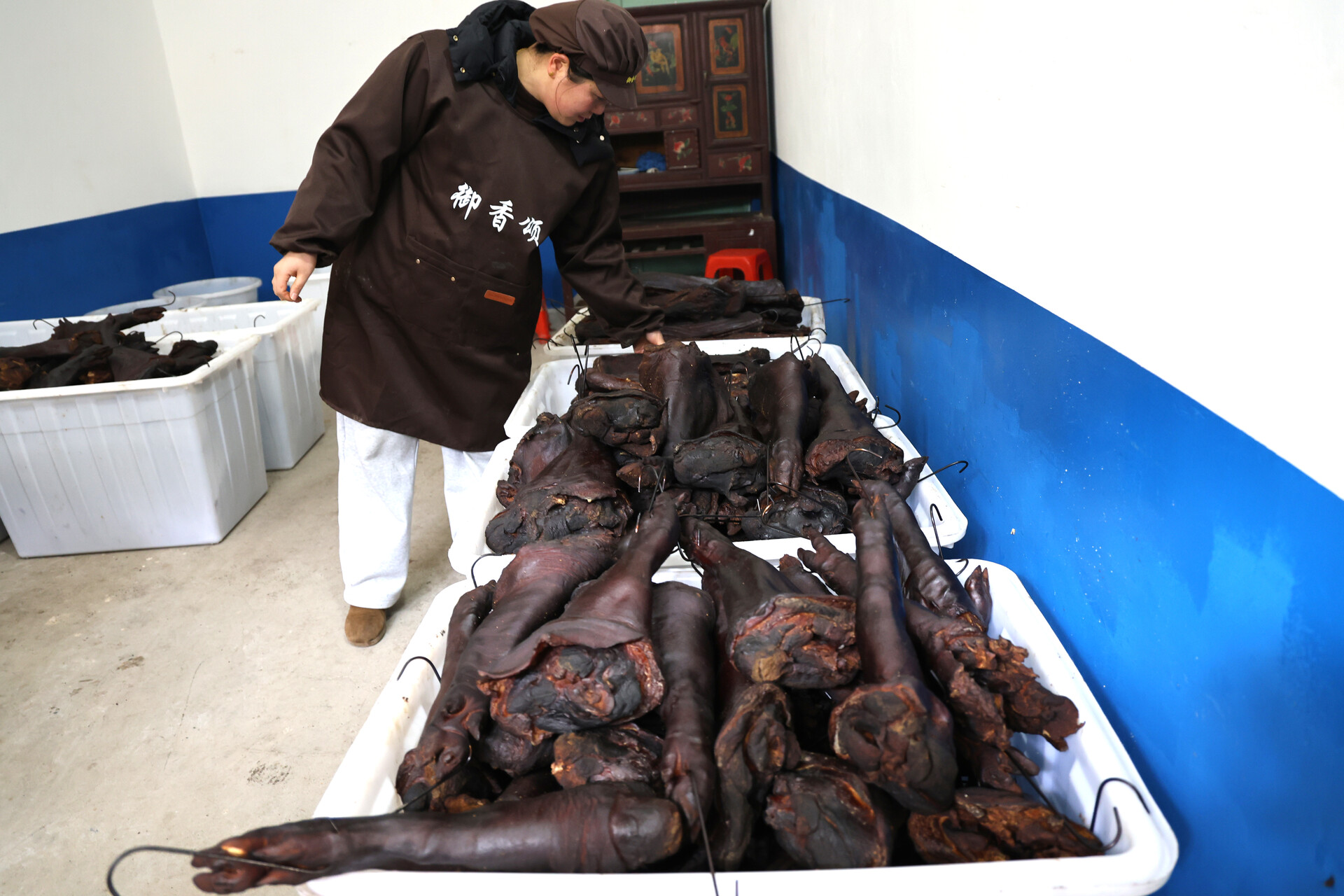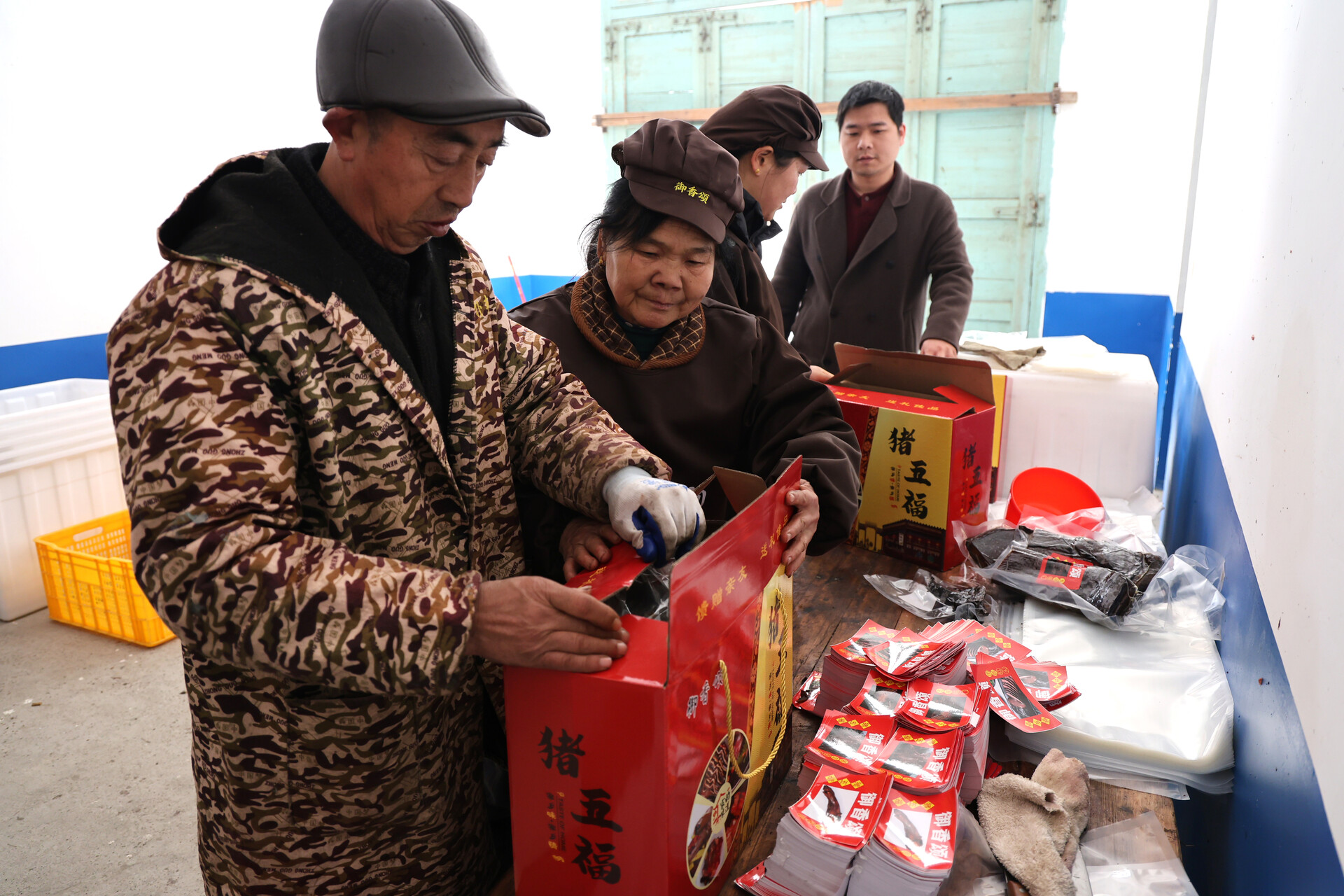 2025年10月,御香颂腊制品厂正式投产。这家扎根龙山脚下的村办企业,只用心做一件事:用龙山人传承了上百年的老法子,主要生产腊肉、猪血丸子、腊猪脚、猪耳、猪舌、腊肠等系列地道的腊制品、家乡味。