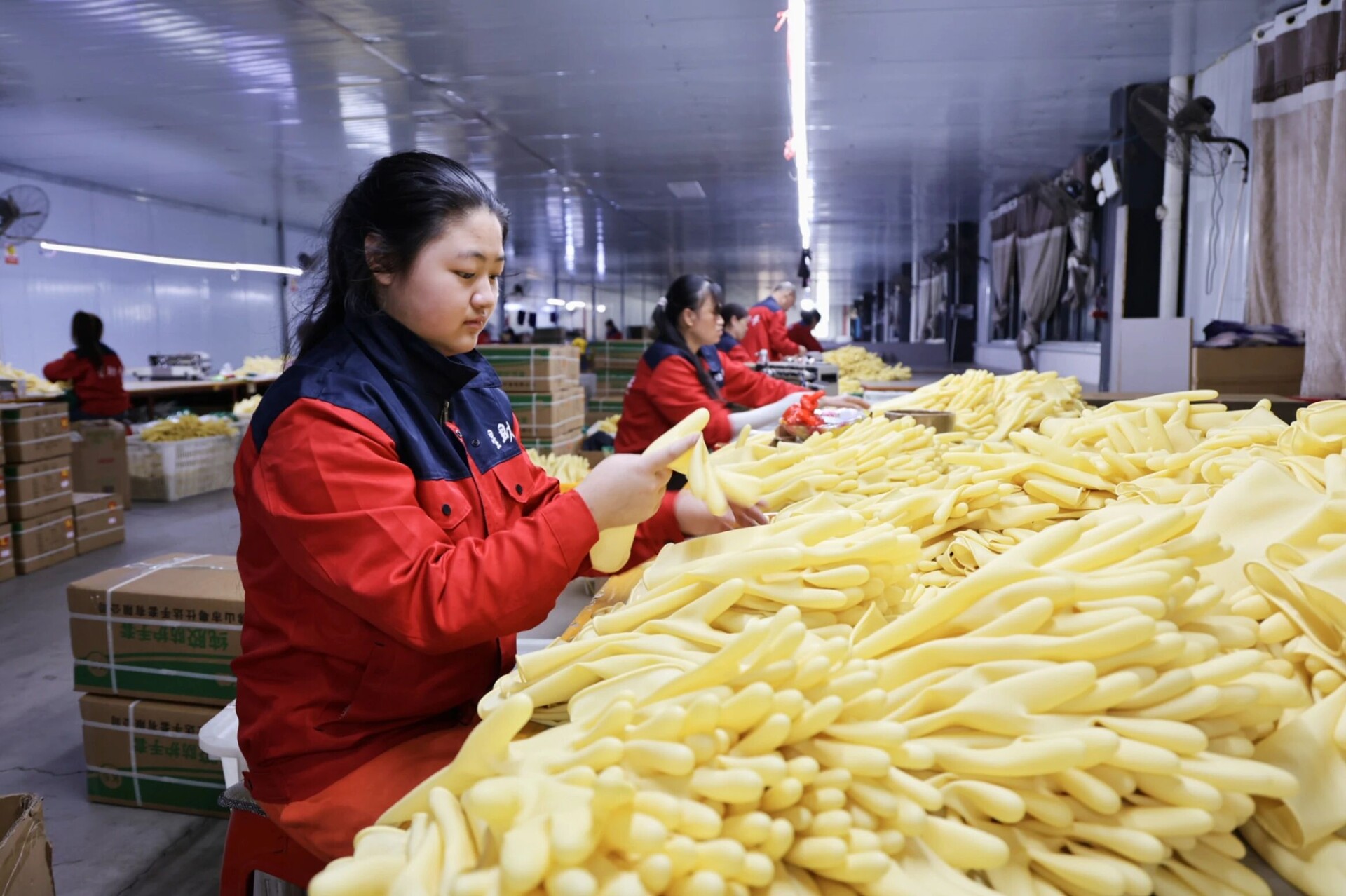 同样忙碌的还有湖南星助手日用橡胶制品制造有限公司。自动化生产线上,一双双手套排队“走”下生产线;成品车间里,工人们正忙着将一批批天然乳胶防护手套打包入袋,整理装箱,准备发往全国各地。该公司年产天然乳胶防护手套1500万双,产品用途广泛,不仅畅销国内市场,还部分出口海外。