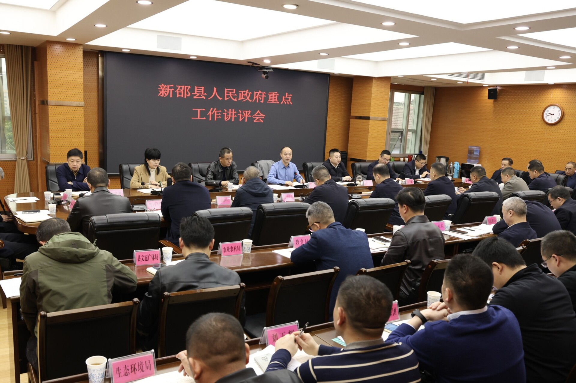 新邵新闻网3月30日讯(记者 孙咏梅 王宏志)3月30日,新邵县委副书记、县长谢小军主持召开县人民政府重点工作讲评会议。会议全面总结3月份工作开展情况,深入分析当前形势和存在问题,安排部署下阶段重点任务,动员全县上下锚定目标、加压奋进,坚决打好一季度收官战,为做好全年工作夯实基础。县领导贺雄、彭利、黄洁辉、罗静、李学军参加会议。