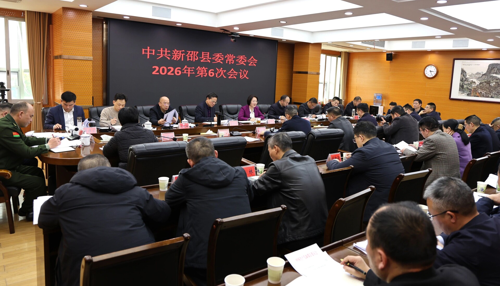 新邵新闻网3月6日讯(记者 何雯 唐文峰)3月5日下午,新邵县委常委会召开2026年第6次会议,深入学习习近平总书记近期重要讲话和重要文章精神,研究贯彻落实意见;传达学习全市相关会议精神,听取全县相关会议筹备情况汇报;审议通过有关行动方案,学习贯彻中共中央办公厅文件精神及中央、省委、市委党建工作领导小组会议精神,安排部署当前重点工作。县委书记黄海蓉主持会议。