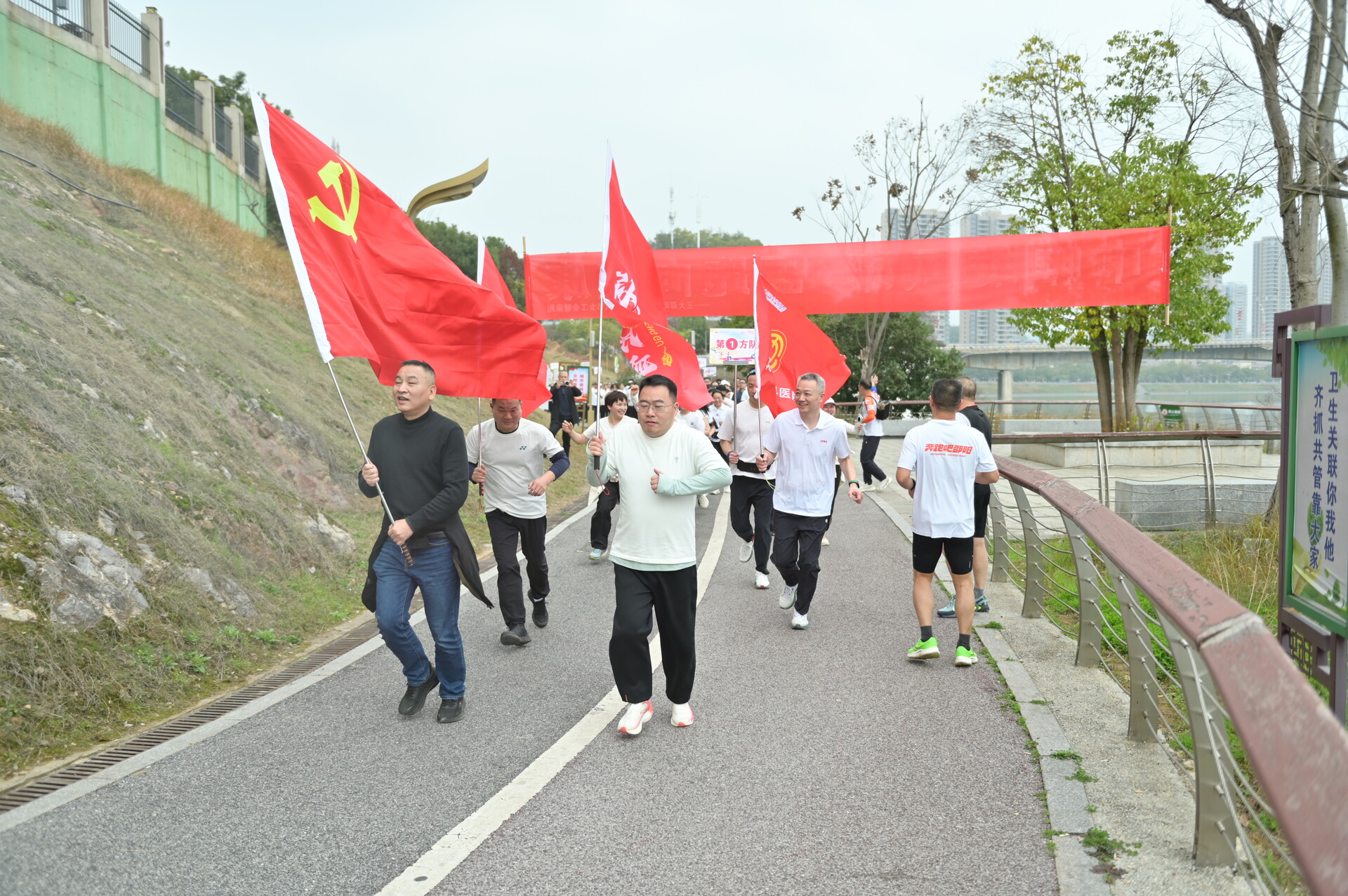 活动结合职工体能差异,合理设置6公里挑战组与3公里体验组,分别配备70分钟、40分钟友好关门时间,尽显人文关怀。沿江赛道上,“正骨跑团,越跑越强;凝心聚力,再创辉煌”的口号声此起彼伏、响彻江畔,充分展现出医院团队奋发向上、团结奋进的昂扬风貌。