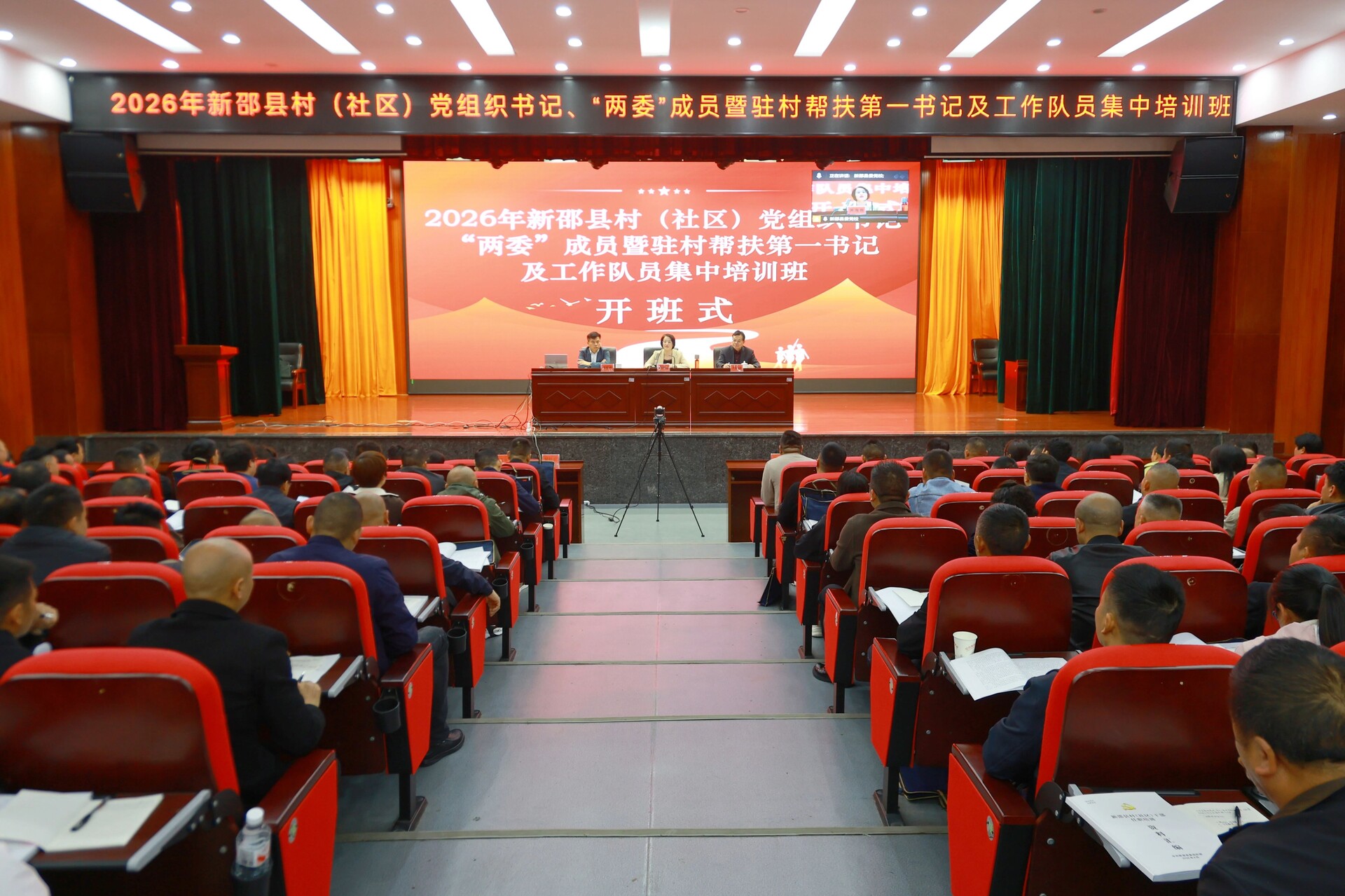 新邵新闻网4月15日讯(记者 屈凌芙蓉 唐文峰)4月14日,2026年新邵县村(社区)党组织书记、“两委”成员暨驻村帮扶第一书记及工作队员集中培训班开班。县委书记黄海蓉出席开班仪式并作专题辅导,要求锻造一支政治过硬、本领过硬、作风过硬的新时代乡村振兴干部队伍。县委副书记、统战部部长、县委党校校长王振波主持开班仪式,县委常委、组织部部长罗伟宏出席。