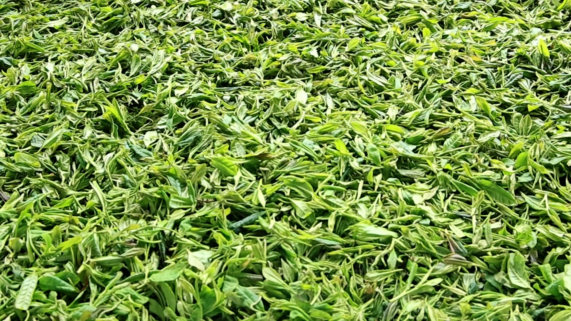 4月15日清晨,大新镇磨林村的野生茶山上云雾缭绕,漫山茶树郁郁葱葱,一颗颗嫩绿的芽尖挂满枝头,清香扑鼻。村民们正熟练地采摘鲜嫩茶芽,确保春茶应收尽收。下午,村民们携带着当日采摘的茶叶,前往村里收购点进行交售。茶厂工作人员现场称重、登记、结算。