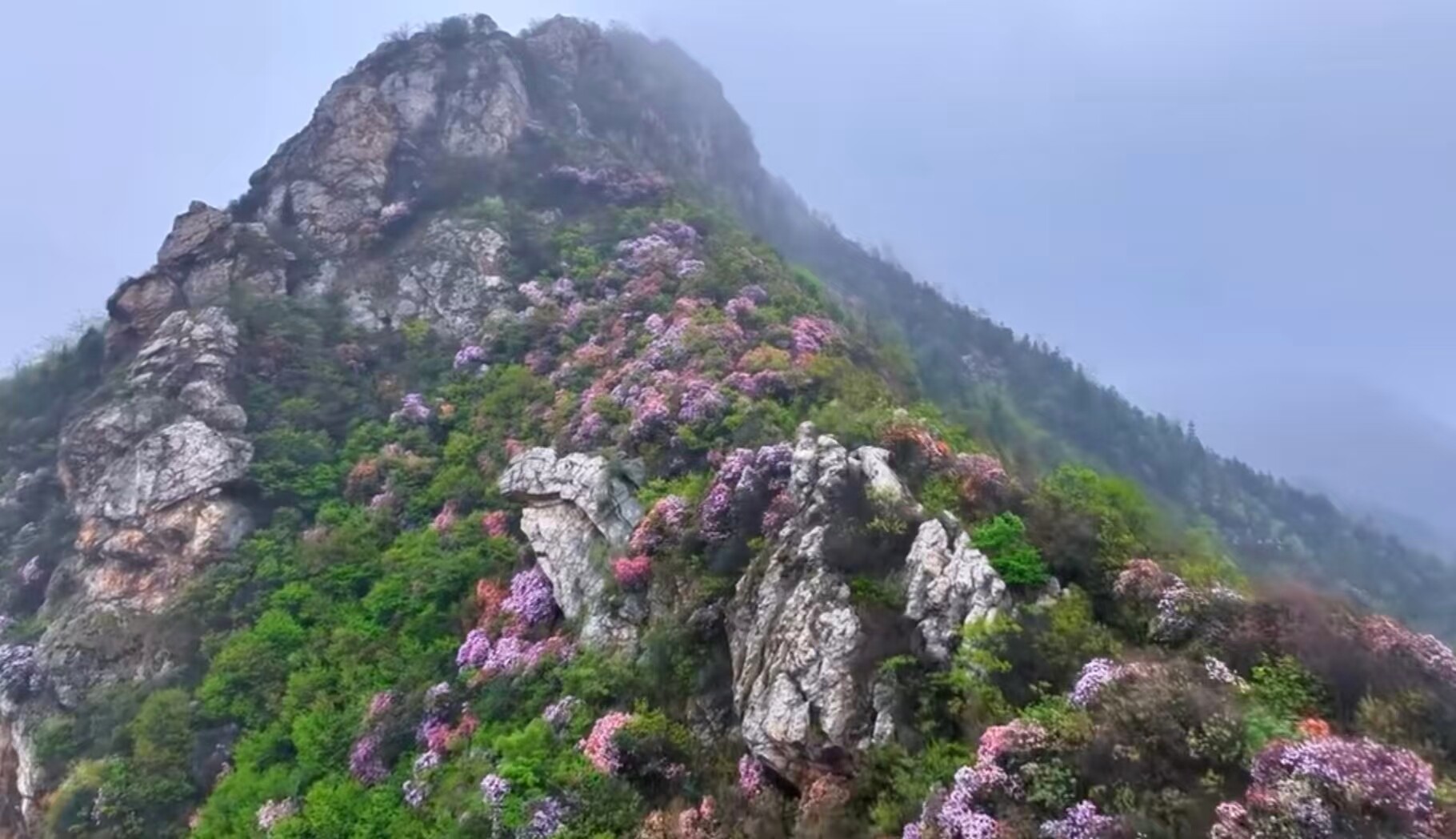 新邵新闻网4月10日讯(记者 孙咏梅 张海兵)4月9日,新邵严塘镇川岩山数千亩鹿角杜鹃迎来盛花期,漫山遍野的粉紫色花团在青山间肆意绽放,勾勒出一幅绝美的春日生态画卷。