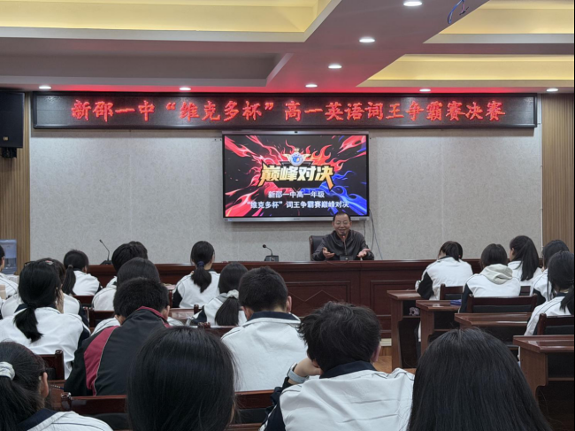 此次词王争霸赛既是对高一学生词汇学习成果的一次集中检阅,也生动展现了新邵一中学子扎实的学科素养与奋发向上的精神风貌,更是学校英语教学改革成效的具体体现。长期以来,学校持续推进英语教学创新,着力培育学科核心素养,通过多样化的学科活动赋能学生语言能力提升。今后,学校将继续打造高品质学科活动平台,以活动促教学、以学风助成长,持续推动教学质量与校园文化建设迈向新台阶。