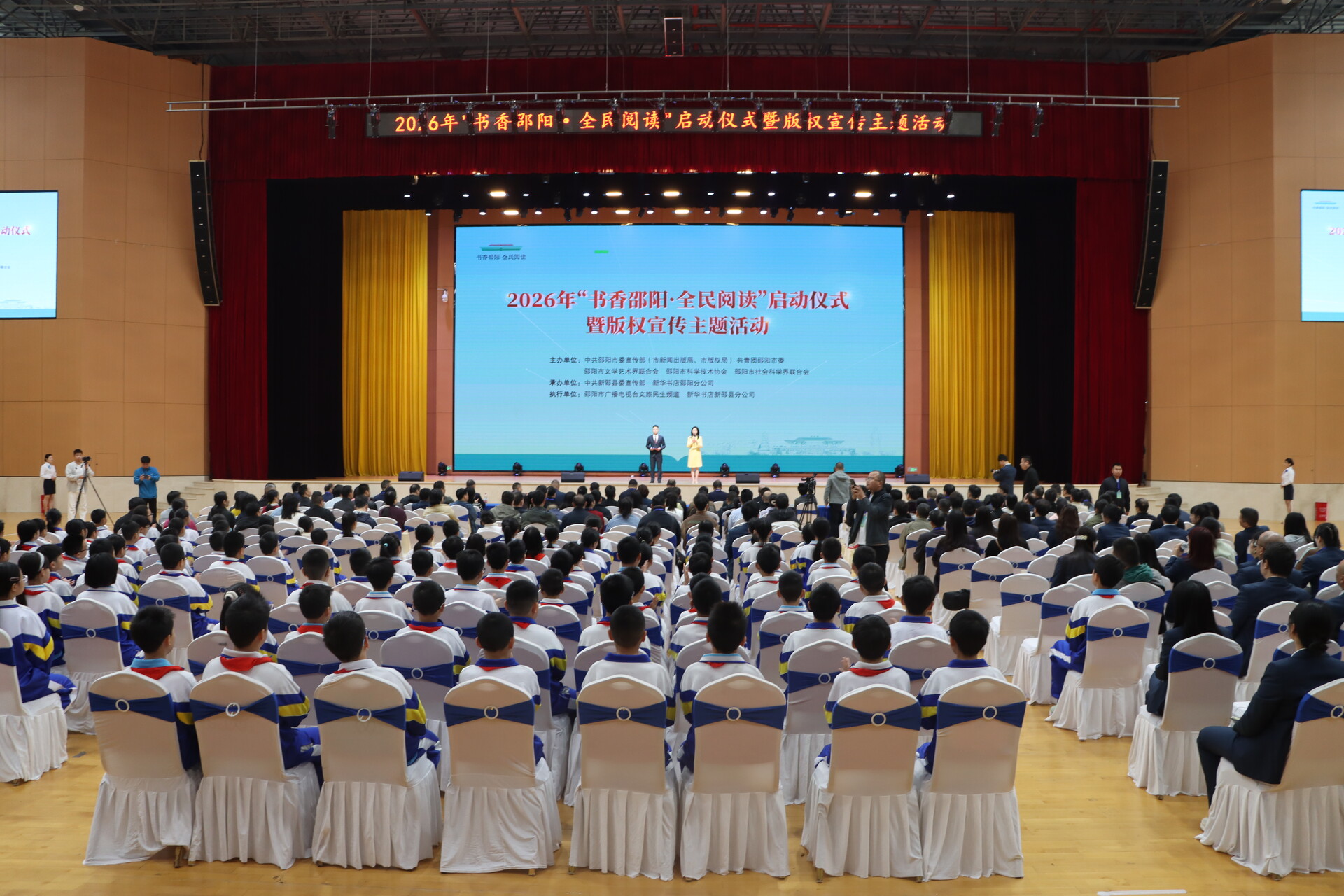 新邵新闻网4月24日讯 (记者 杨明航 王宏志)书香润古城,文脉传千载。4月24日,2026年“书香邵阳・全民阅读”启动仪式暨版权宣传主题活动,在邵阳广益世才高级中学举办。本次活动以《全民阅读促进条例》实施为契机,正式启动邵阳市首个全民阅读活动周,同步深化版权宣传普及,以全民阅读高质量发展助力文化强市建设。