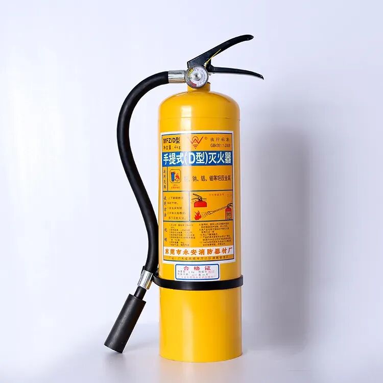 5.金属火灾灭火器:用于扑救D类火灾(金属火灾,如钾、钠、镁、钛等金属燃烧火灾),采用特殊的灭火剂(如金属粉末、液态金属混合物等)进行灭火。