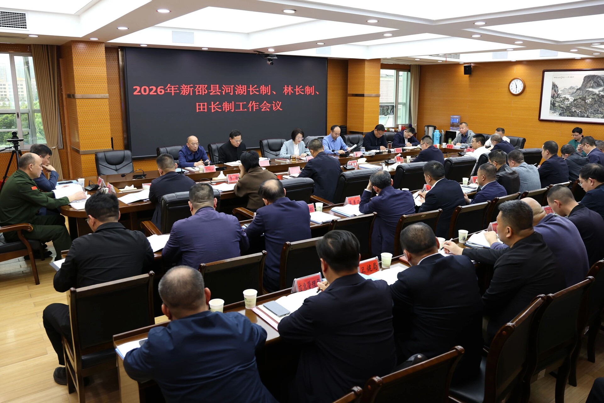 新邵新闻网4月21日讯(记者 何雯 赵少波)4月21日,新邵县委书记黄海蓉主持召开2026年全县河长制、林长制、田长制(简称“三长制”)工作推进会,深入学习贯彻习近平生态文明思想,传达学习省、市有关会议精神,总结我县去年“三长制”工作,审议有关文件,安排部署下阶段重点任务。县委副书记、县长谢小军,县委副书记、统战部部长王振波,县人大常委会党组书记、主任刘长峰,县政协党组书记、主席邹功树,县领导贺雄、李繁荣、罗伟宏、黄安石、姚志刚等出席。