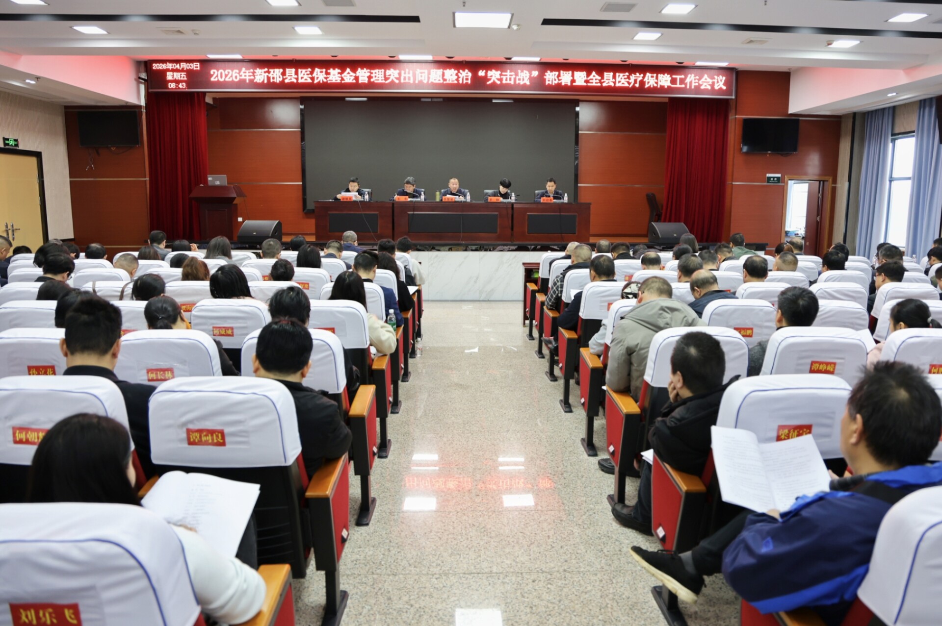 新邵新闻网4月3日讯(记者 孙咏梅 王宏志)4月3日,新邵县召开2026年医保基金管理突出问题整治“突击战”部署暨全县医疗保障工作会。县委常委、宣传部部长李繁荣,副县长罗静出席并讲话,全县相关部门、乡镇、定点医疗机构及定点协议药店负责人等参加。