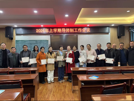 会上举行2025年下学期优秀导师、优秀学员颁奖仪式,学校负责人为获奖师徒颁发荣誉证书,充分肯定他们在师徒结对中的突出成效,号召全体教师以先进为标杆,互学互促、笃行不怠。