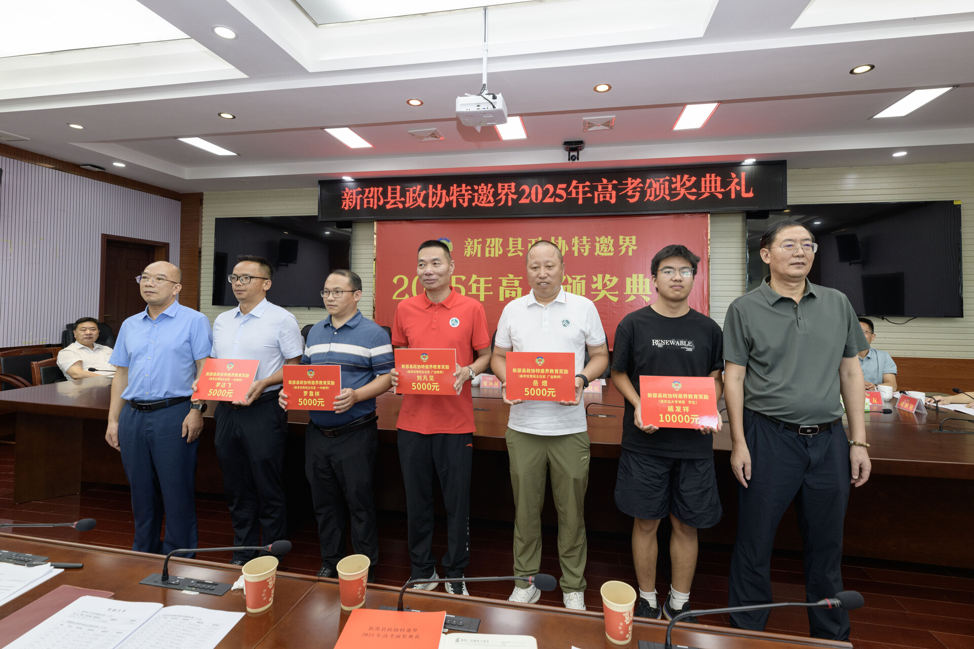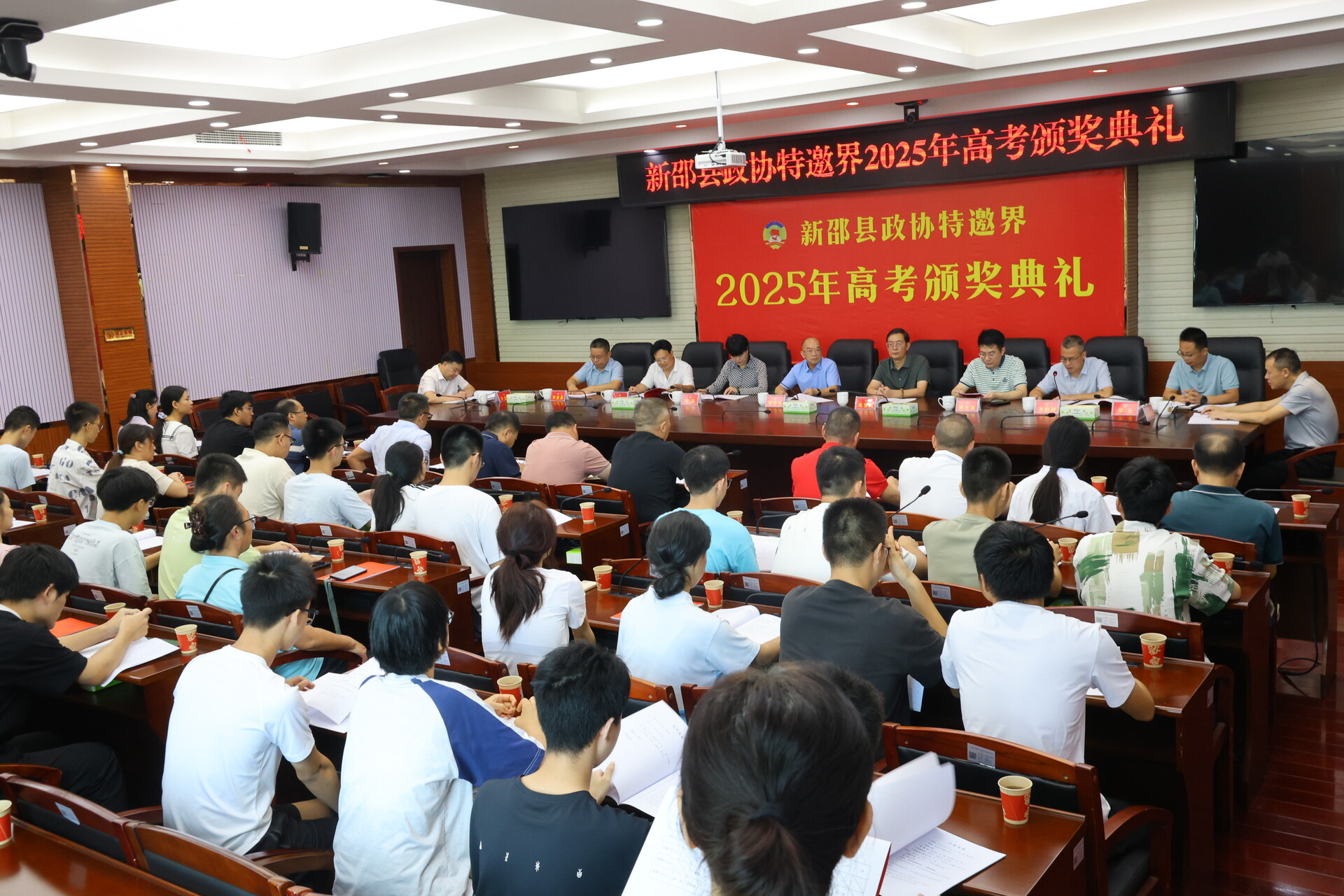 新邵新闻网8月8日讯 (记者 屈凌芙蓉 唐文峰)8月8日,新邵县政协特邀界举行2025年高考颁奖典礼,对42名成绩优异的师生予以表彰奖励。县政协党组书记、主席邹功树主持并讲话,县政协常委、特邀界副组长、长沙新邵商会会长、湖南三贤文化发展有限公司董事长邓贤民,县领导罗静、陈历林、刘慎等出席。