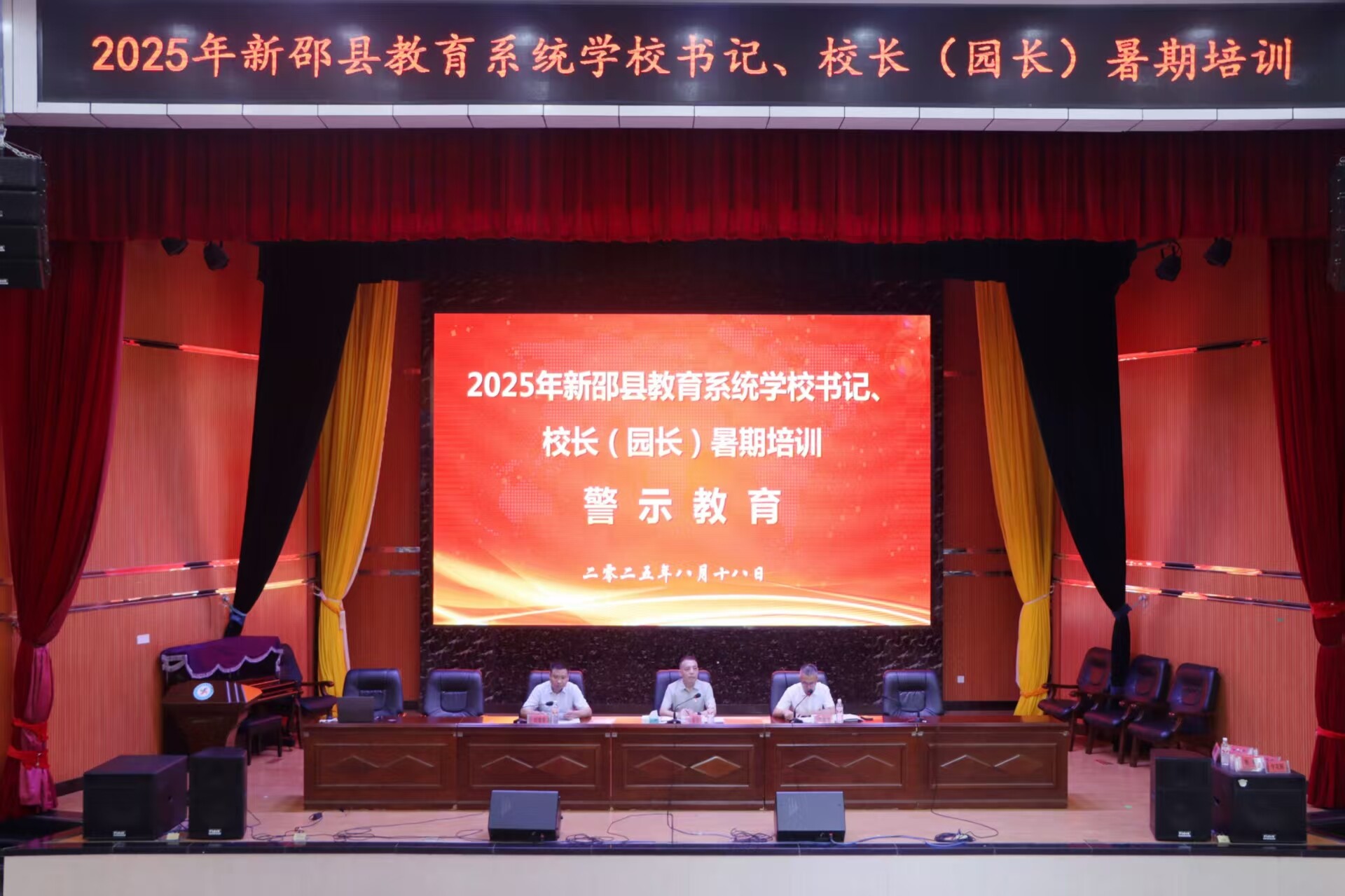 新邵新闻网8月19日讯(记者 彭欢 刘丈国 通讯员 刘纪新)8月18日,2025年新邵县教育系统学校书记、校长(园长)暑期培训正式开班,228名教育系统骨干力量齐聚一堂,开启为期4天的“充电”之旅。县委副书记、统战部部长、县委教育工委书记王振波,县委常委、县纪委书记、县监委主任黄安石出席。