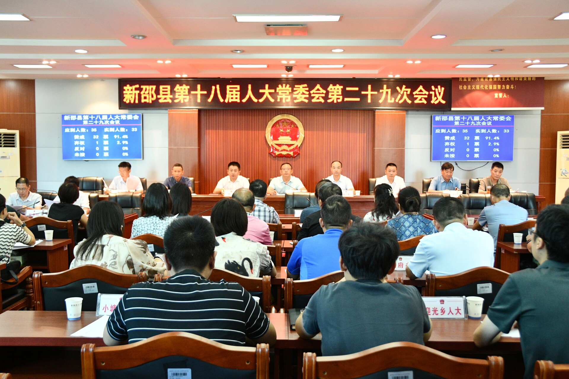 新邵新闻网8月21日讯(记者 寻健)8月20日,新邵县第十八届人大常委会第二十九次会议召开,县人大常委会党组书记、主任刘长峰主持会议;县人大常委会党组副书记、副主任周晓明,副主任田丰硕、周湘平、石争光、蒋文华参加会议;县委副书记、县长谢小军,县监察委员会、县人民法院、县人民检察院、县政府办相关负责人及各乡镇人大主席列席会议。