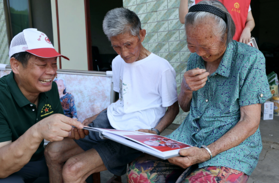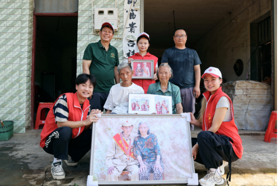 “今天是八一建军节,我们特意来看望罗爷爷一家,结婚照就是最特别的节日惊喜!”新邵县大同公益志愿者协会副会长何付祥介绍,我们在走访慰问老兵时得知了罗爷爷夫妇的这份遗憾,便萌生了为他们补拍结婚照的想法。