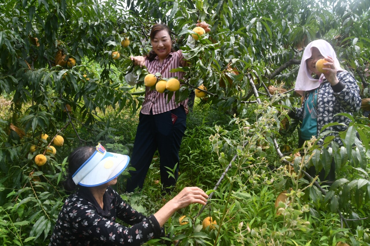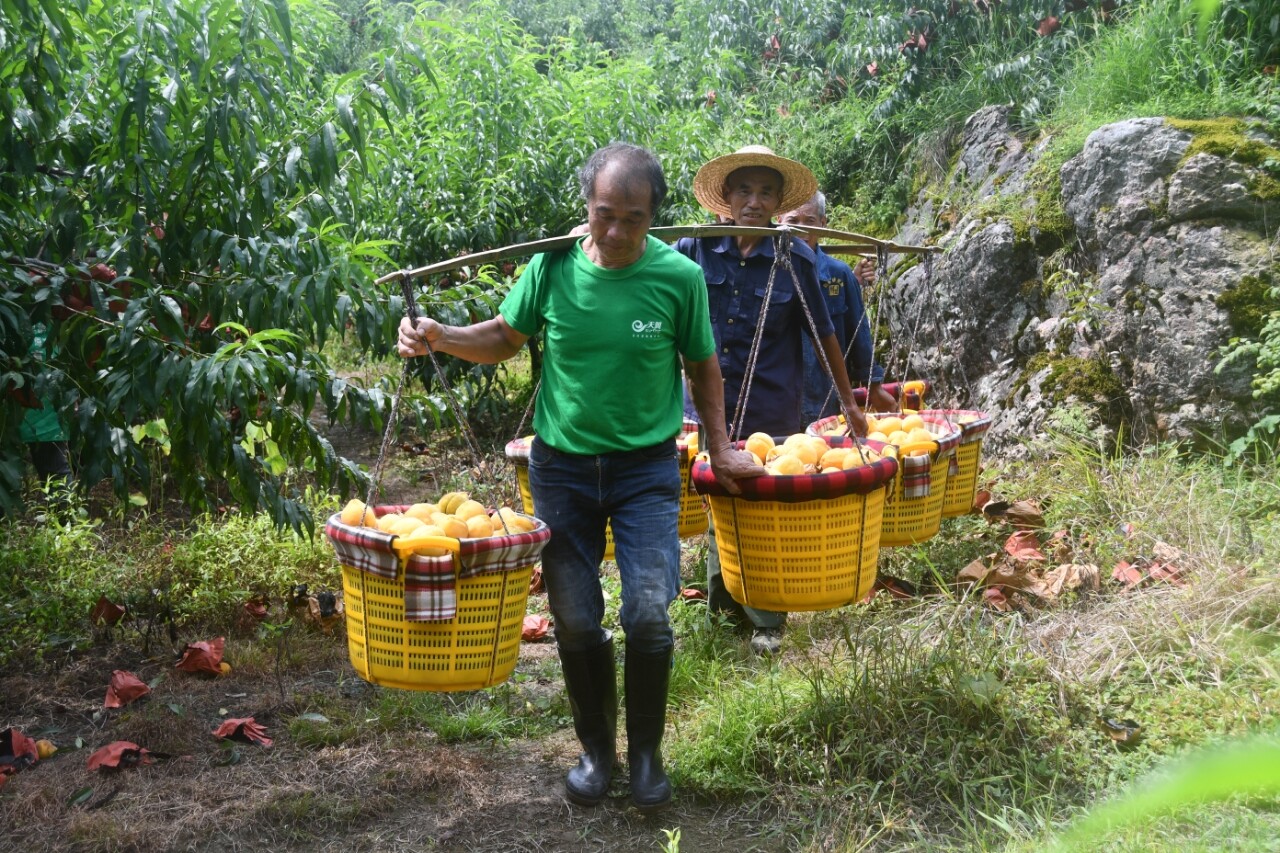 新邵新闻网(记者 杨能广 张海兵) 8月4日,在海拔700多米的太芝庙镇牛头冲村的高山黄桃喜获丰收,缀满枝头的黄桃色泽金黄,果型端正,引来了众多外地客人前来采摘。通过各方支持,开园当天,就销售黄桃1万多斤。近年来,牛头冲村引进、种植黄金锦绣黄桃280亩,这种黄桃果型正,果体大,果肉金黄甜度高,受到市场欢迎。今年预计产量可达20万斤,果农户均可增收3000元。