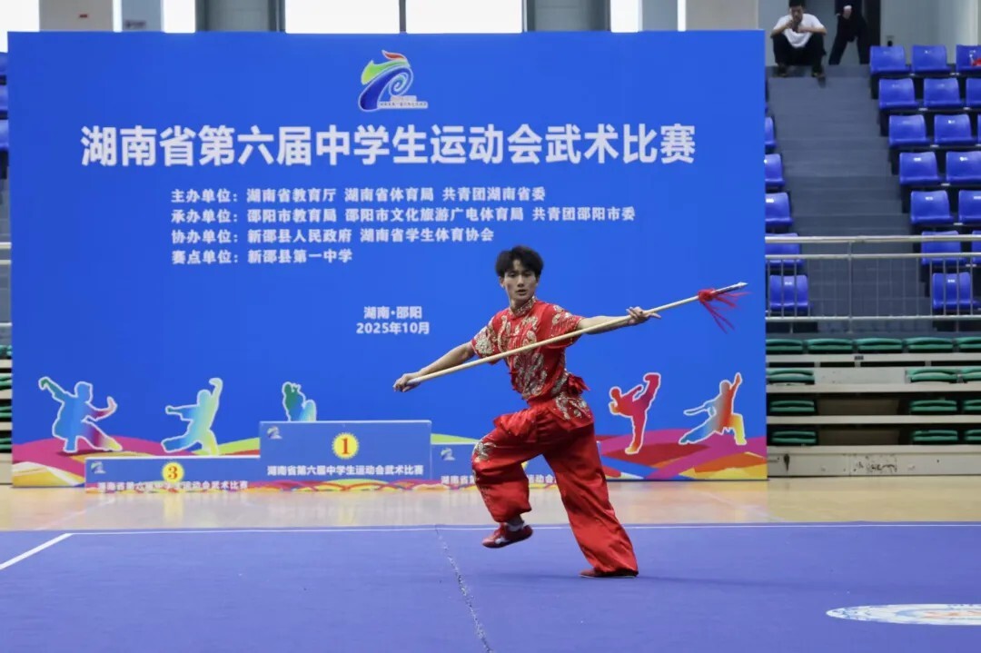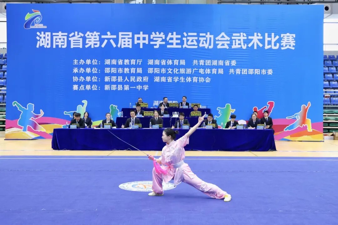 新邵县是湖南省“太极拳运动之乡”和“大成拳”示范基地,当地武术文化源远流长,群众基础扎实,习武氛围浓厚,为武术运动的普及与发展提供了良好土壤。本次比赛由湖南省教育厅、湖南省体育局、共青团湖南省委主办,邵阳市教育局、邵阳市文化旅游广电体育局、共青团邵阳市委承办,新邵县人民政府、湖南省学生体育协会协办,是全省中学生武术项目的最高水平赛事。