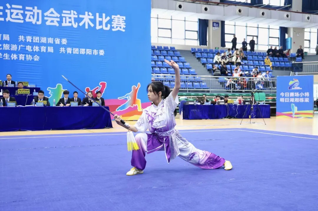 “我从小就对武术充满兴趣,今天整体发挥得不错,基本上把平时训练的水平展现出来了。也特别感谢赛事组委会和所有工作人员的辛勤付出,让我们能安心比赛。接下来我还有太极拳比赛,我会继续努力,争取发挥出更好的水平,为邵阳争光。”任艺璇在赛后表示。