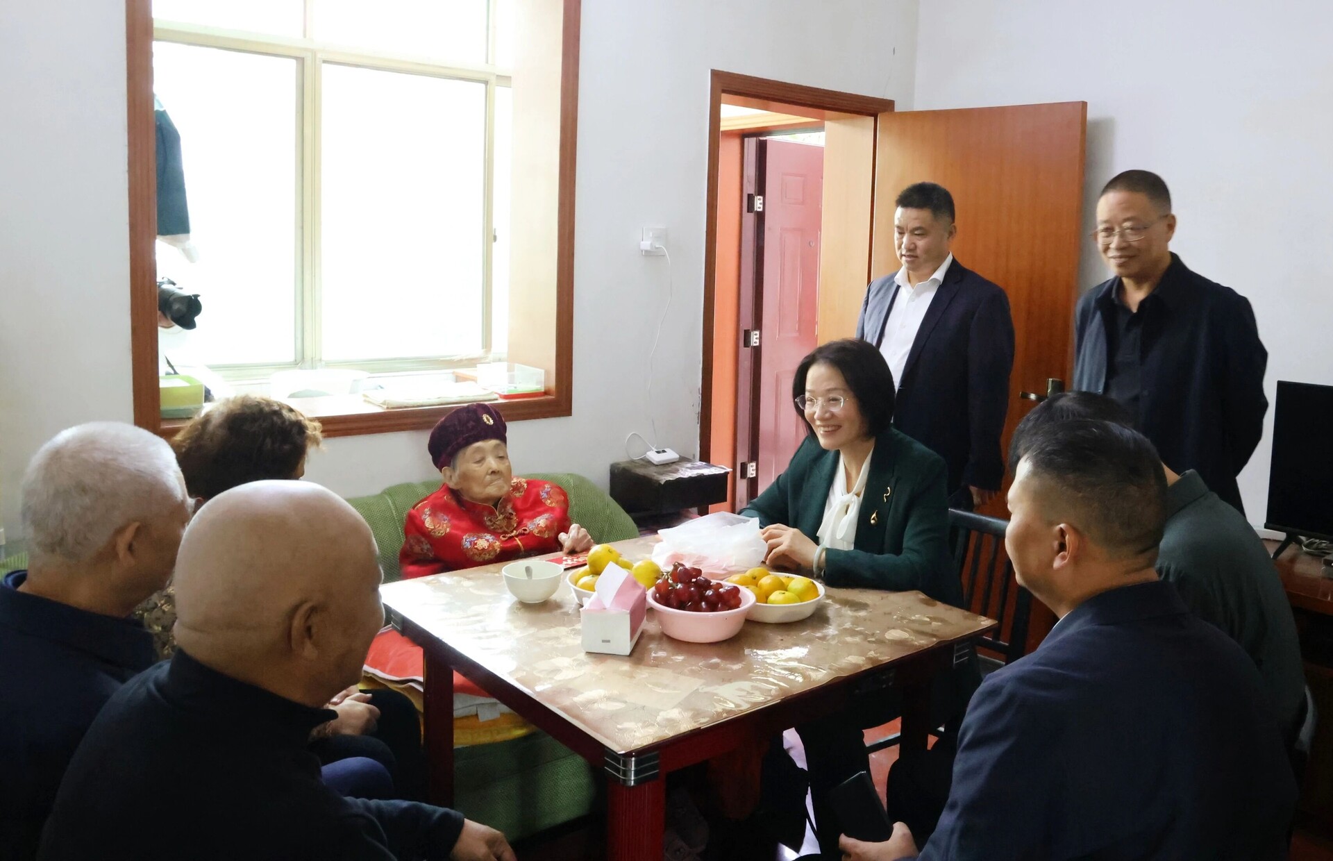 当天,黄海蓉一行首先到酿溪镇大新社区看望百岁老人杨美英,与老人家属亲切交谈,关切询问老人的身体情况和生活起居。她指出,百岁老人是家庭和社会的宝贵财富,家属要继续照料好老人的日常生活;镇、社区及相关部门要持续关心关爱高龄老人,落实好各项优待政策,及时帮助解决实际困难,让老人在温馨关爱中安享晚年。