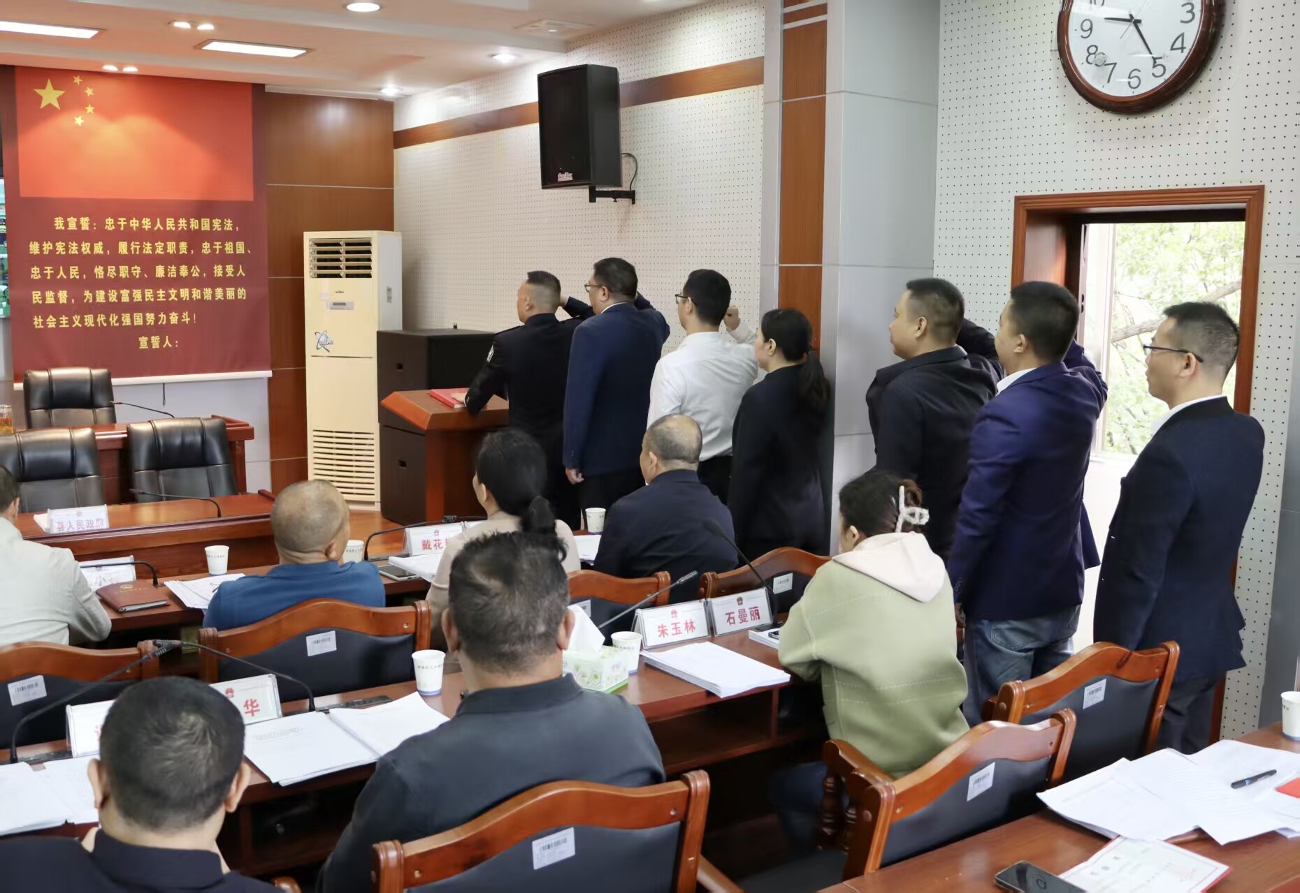 会议依法进行了人事任免。根据提请,经常委会组成人员审议和表决,决定任命黄小鹏为新邵县人民政府副县长、县公安局局长;决定任命谢永强为新邵县城市管理和综合执法局局长,并对其他5名同志进行了相关职务任命。会上为新任命人员颁发任命书,并举行向宪法宣誓仪式。新任命人员面向宪法庄严宣誓,以铿锵誓言承诺将恪守宪法原则、忠诚履职尽责。