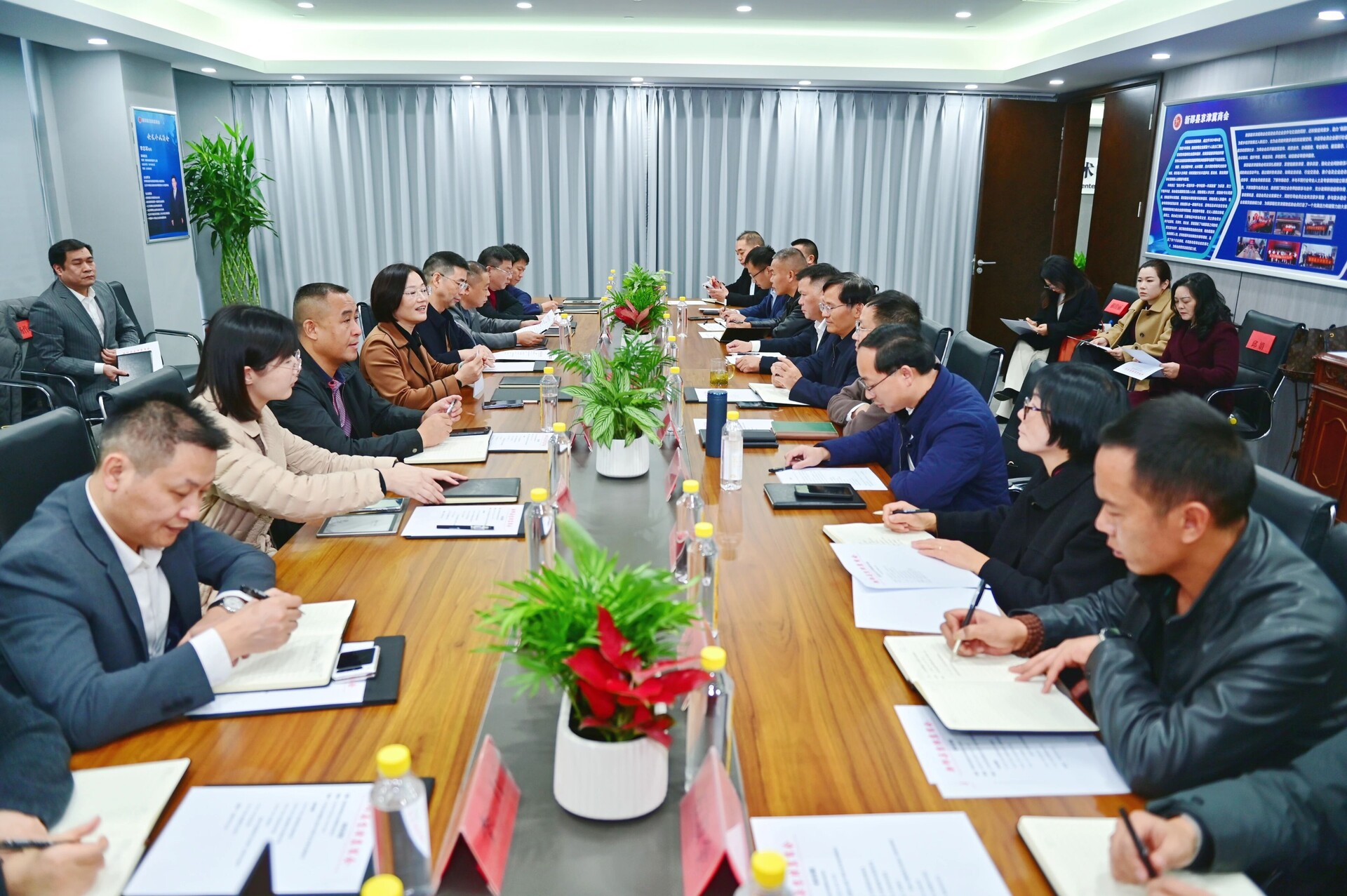 考察组还专程拜访了新邵京津冀商会,并与专家顾问、企业家代表深入座谈。会上,黄海蓉详细介绍新邵近年来经济社会发展成效、营商环境优势及“十五五”规划思路,诚挚听取专家顾问和企业家对家乡重点工作、重大民生及“十五五”规划的意见建议。黄海蓉代表县委、县政府衷心感谢京津冀专家顾问、企业家对家乡的关心与支持,她指出,商会要做好服务联络,促进会员间信息互通、资源共享、合作共赢;要积极牵线搭桥,寻找与新邵发展的契合点,引导企业家回家乡投资兴业;要厚植家乡情怀,积极宣传新邵的发展机遇与投资环境;要依托资源信息优势,针对性开展招商引资、招才引智工作,为家乡汇聚更多优质发展要素。各级各部门要进一步精简优化服务流程,以高质量招商和优质营商环境,携手推动新邵经济社会高质量发展迈上新台阶。