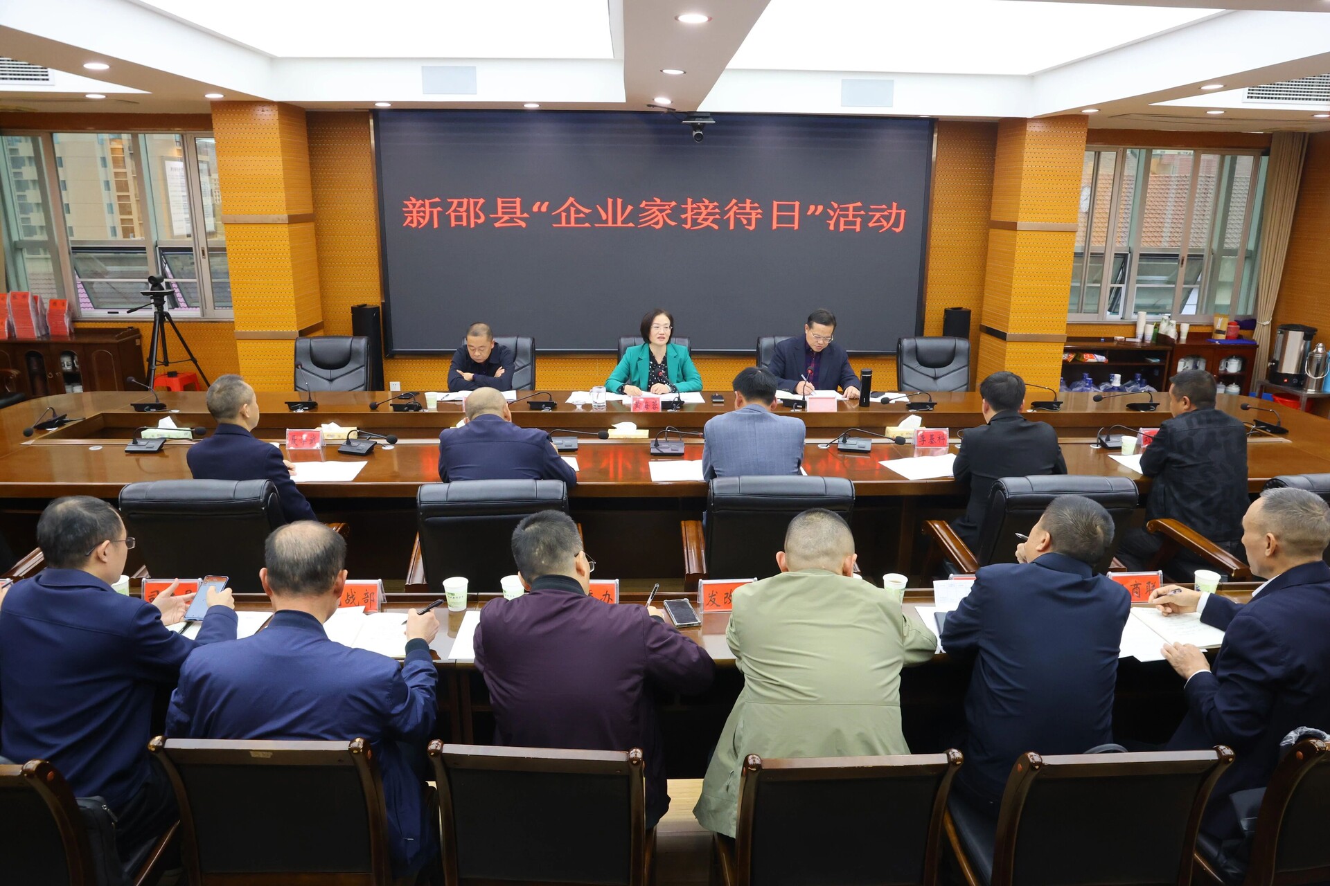 新邵新闻网11月5日讯(记者 屈凌芙蓉 唐文峰)11月4日下午,新邵县举行“企业家接待日”活动。县委书记黄海蓉与部分涉农企业家代表面对面座谈,现场听取企业家提出的意见建议,协调解决企业发展难题,全力推动涉农企业提质增效,助力县域农业高质量发展。县委副书记、统战部部长王振波主持会议。