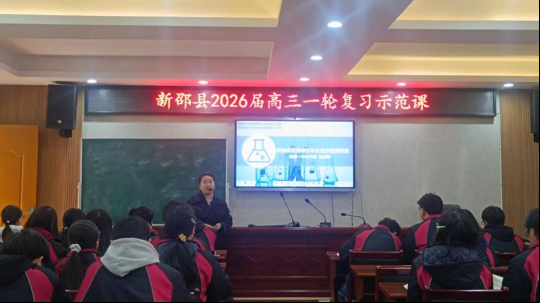 新邵新闻网12月19日讯(通讯员 刘飘也 王小东 段涵)近日,新邵县2026届高三复习备考培训会在新邵县第一中学顺利举办。活动以“正确把握2026年高考备考方向,更新高考复习理念,优化2026届高三教学和备考”为核心,汇聚多方教学力量共商备考良策,全县高三化学教师全程参与,通过示范课展示、互动交流、专业点评等环节,成功搭建赋能教师成长的高效教研平台。