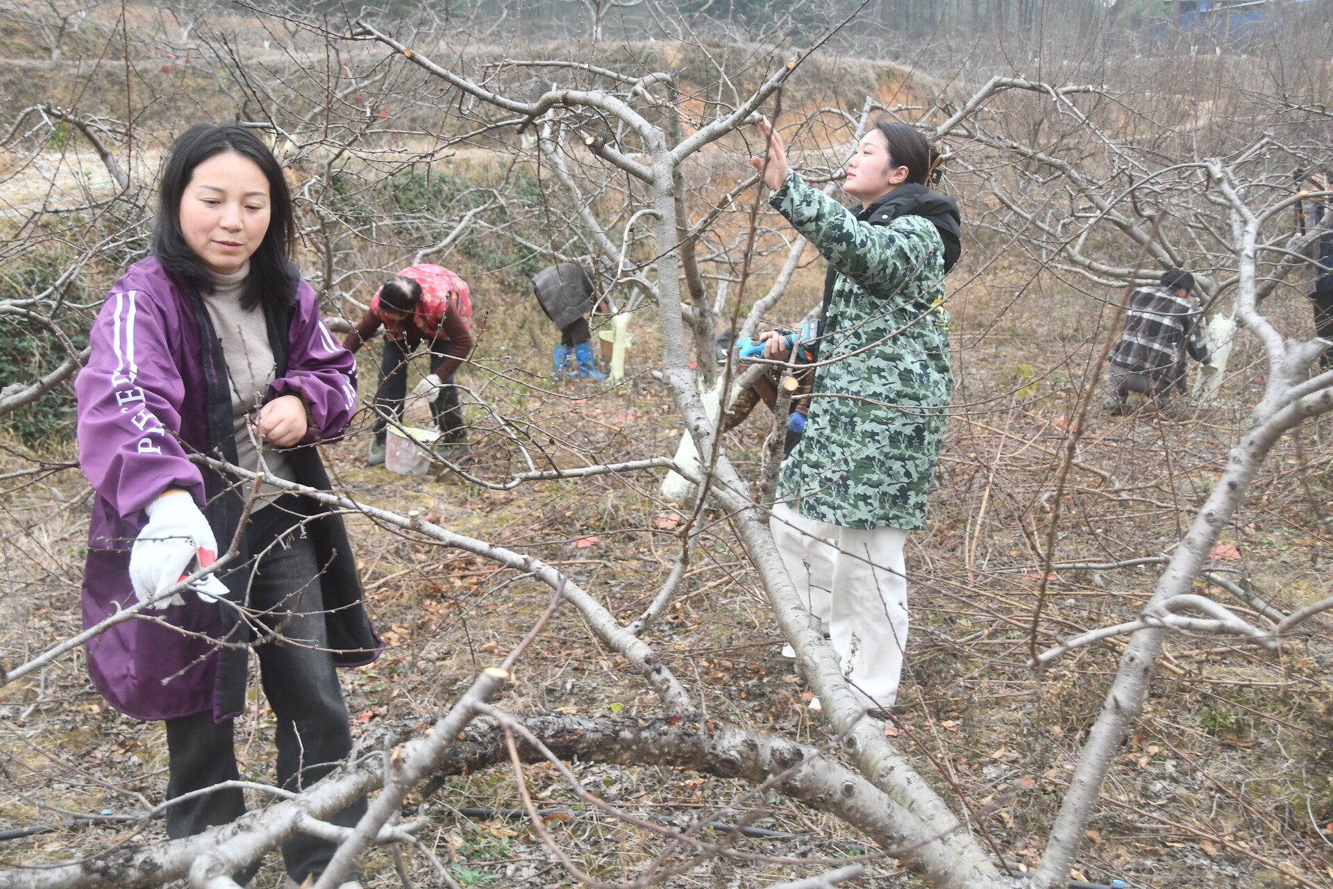 新邵新闻网12月23日讯(记者 孙咏梅)12月22日,果农在位于新邵县寸石镇十字村的新邵县农青种养农场黄桃种植基地为果树剪枝。入冬以来,新邵县各水果种植基地抢抓时机,对果园实施冬季修剪管护,贮备能量营养,为下年水果丰产增收打下基础。