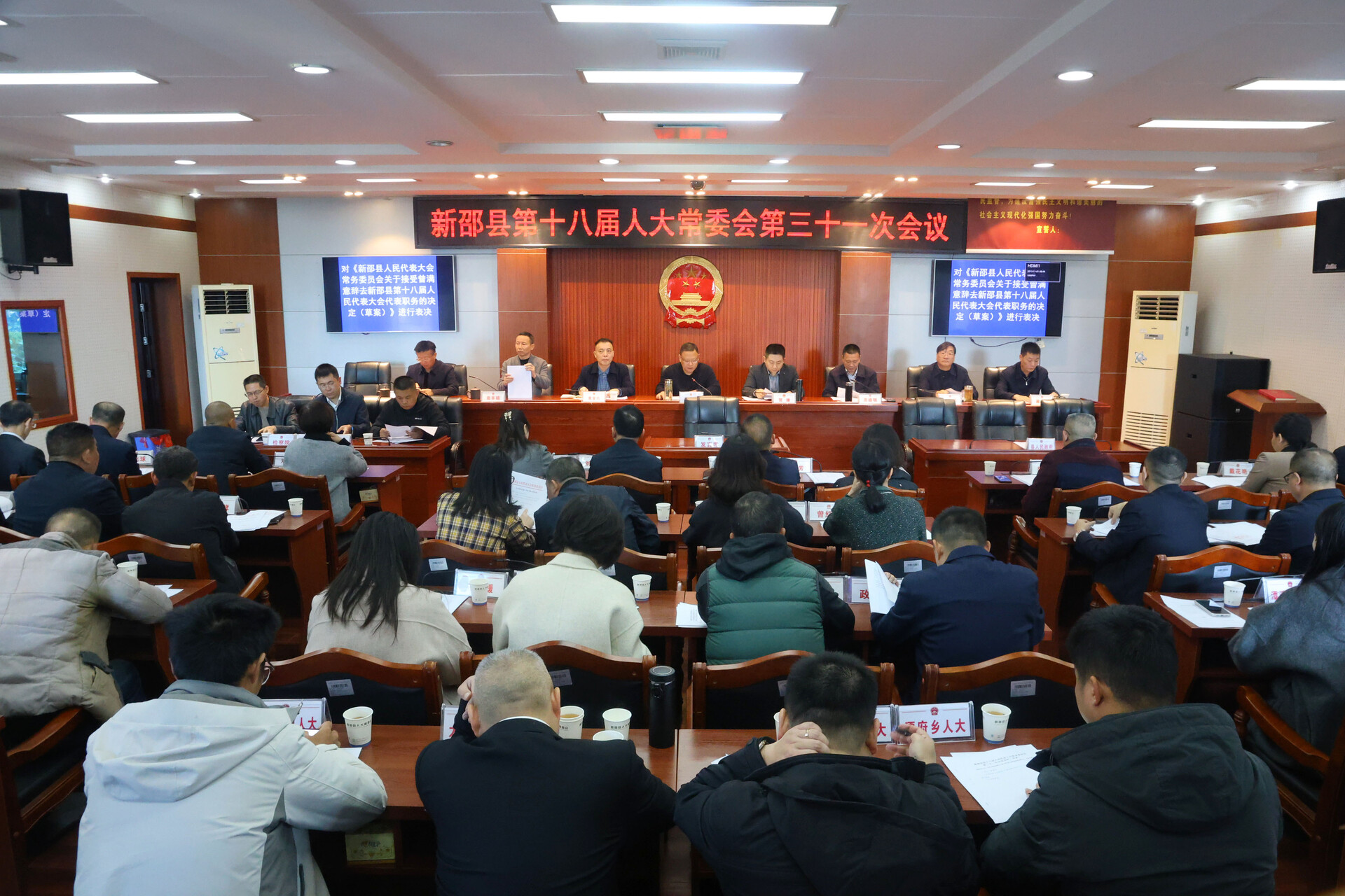 新邵新闻网11月28日讯(记者 屈凌芙蓉 唐文峰 通讯员 安泽洋)11月28日,新邵县第十八届人大常委会第三十一次会议召开。县人大常委会党组书记、主任刘长峰主持会议;县人大常委会党组副书记、副主任周晓明,副主任田丰硕、周湘平、石争光、蒋文华参加会议。县委常委、常务副县长贺雄,县委常委、县纪委书记、县监委主任黄安石,县人民法院、县人民检察院、县政府办等有关单位负责同志及各乡镇人大主席列席会议。